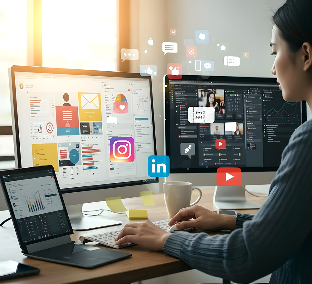 - Social Media Management: Regular posts, stories, and reels across Facebook, Instagram, LinkedIn, and other platforms.